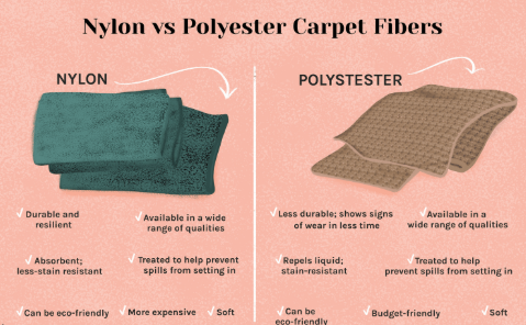 More than just ounce weight and pile height, what the actual fibers are made from can make huge difference. The most common is polyester, a cost efficient option but you sacrifice on comfort and durability. Nylon is a step up in durability, comfort, and cost as well unfortunately. Well worth it for the upgrade in quality however. The absolute best in durability is going to be a wool carpet, however it can feel scratchy and uncomfortable but could be a good option if you want a luxurious look.